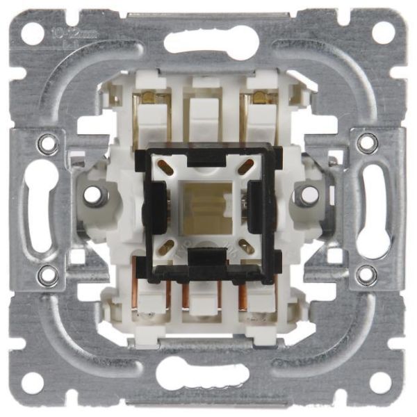 Tryckknappsinsatser med återfjädrande mekanism för infällt montage, IP 20. Snabbanslutning av ledarna. 10A, 250V. Kompletteras med vippa och ram. 1-polig tryckknappsinsats kan kompletteras med glimlampa för rätt spänning.
