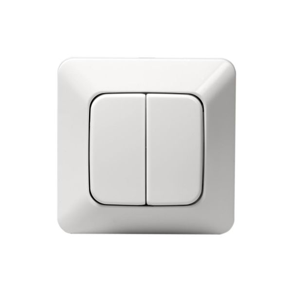 Art.nr: 3023064Kompletta tryckknappar med återfjädrande vippor för infällt montage, IP 20. Alpinvit.
