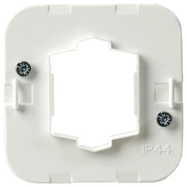 Skruvfastsättningsram för vippor. Används tillsammans med strömställarinsatser vid IP44 montage tillsammans med tätningsdamask 2463 eller 2464. Används utan tätningsdamask när täckramarna måste av säkerhetsskäl vara fastskruvade.