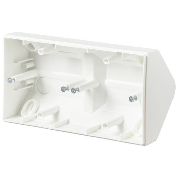 Art.nr: 3134243Hörnbox för utanpåliggande montage för hörninstallationer. För två Impressivo infällda produkter.