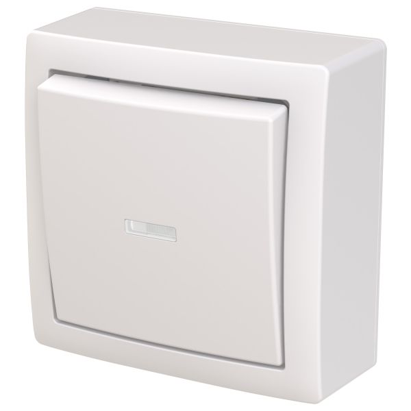 ABB 1-polig strömbrytare SAGA har terminaler som är avsedda för högst två solida eller stela ledningar och består av brytarinsats, vippa, ytmonteringsram och botten. Botten och centrumplattan är tillverkade av biocirkulär plast.