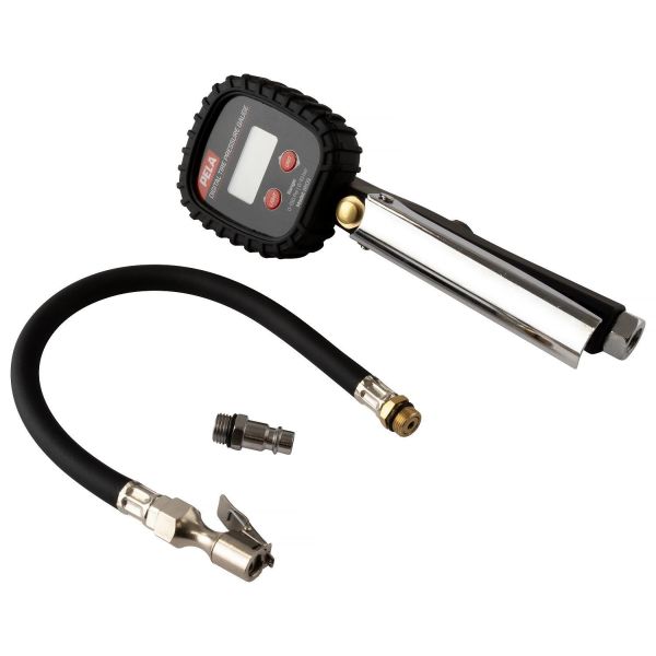 Art.nr: 4071894Digital däckpåfyllare som erbjuder en effektiv lösning för att säkerställa rätt däcktryck på motorcyklar, bilar och små till medelstora skåpbilar. Utrustad med ett LCD digitaldisplay, ger den lättlästa avläsningar i PSI, kg/cm², kPa och Bar, vilket gör den användbar oavsett preferens i måttenheter.