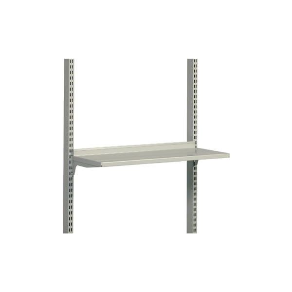 Stålhylla, kan monteras vågrätt eller vinklat 20º. Bärkraft 50 kg.