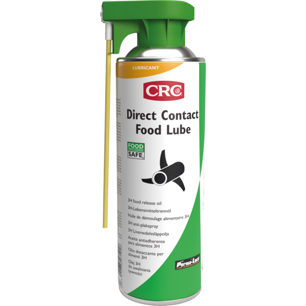 Direct Contact Food Lube är ett NSF-registrerat 3H & H1 högpresterande släppmedel för direkt kontakt med livsmedel och ett mycket effektivt multifunktionssmörjmedel för användning på livsmedelsutrustning där oavsiktlig kontakt med livsmedel kan inträffa.