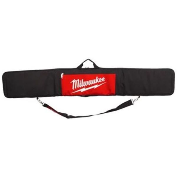 VÀska som passar till Milwaukee-styrskenor GR 800 och GR 1400. VÀskan Àr försedd med axelrem och har Milwaukee-logga bÄde pÄ vÀskan och pÄ axelremmen.