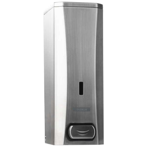 Låsbar tvåldispenser av borstat rostfritt stål som passar i de flesta miljöer. Patron och pump bildar en sluten enhet, vilket motverkar läckage och tilltäppning i pumpen. Påfyllning sker med Katrin Foamwash art nr 758085.