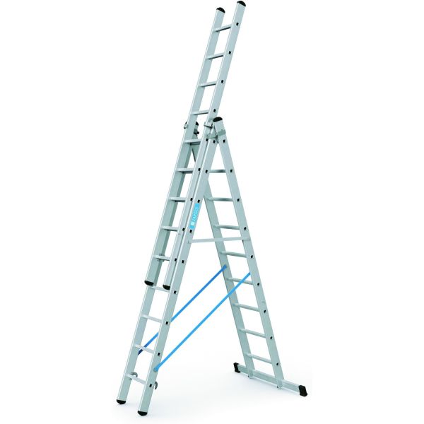 Aluminium. En stege med många användningsområden. Fristående med toppstege, 3-delad anliggande utskjutsstege samt fristående i trappor. Kan fås med elektriskt ledande glidskydd (för explosiva & ESD känslig användning). Godkänd enligt EN-131/INSTA-650 uppfyller därmed kraven enligt Arbetsmiljöverkets föreskrifter AFS 2004:3.