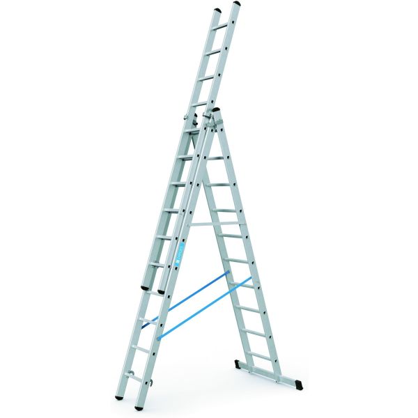 Aluminium. En stege med många användningsområden. Fristående med toppstege, 3-delad anliggande utskjutsstege samt fristående i trappor. Kan fås med elektriskt ledande glidskydd (för explosiva & ESD känslig användning). Godkänd enligt EN-131/INSTA-650 uppfyller därmed kraven enligt Arbetsmiljöverkets föreskrifter AFS 2004:3.
