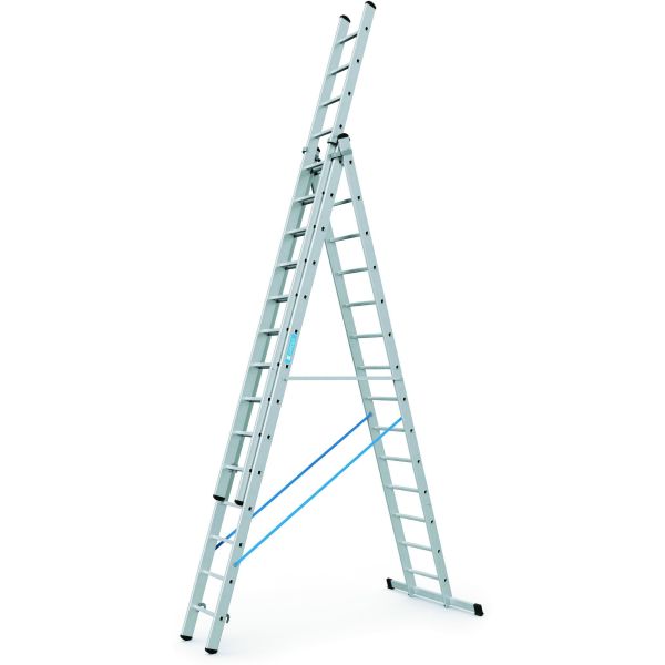 Aluminium. En stege med många användningsområden. Fristående med toppstege, 3-delad anliggande utskjutsstege samt fristående i trappor. Kan fås med elektriskt ledande glidskydd (för explosiva & ESD känslig användning). Godkänd enligt EN-131/INSTA-650 uppfyller därmed kraven enligt Arbetsmiljöverkets föreskrifter AFS 2004:3.