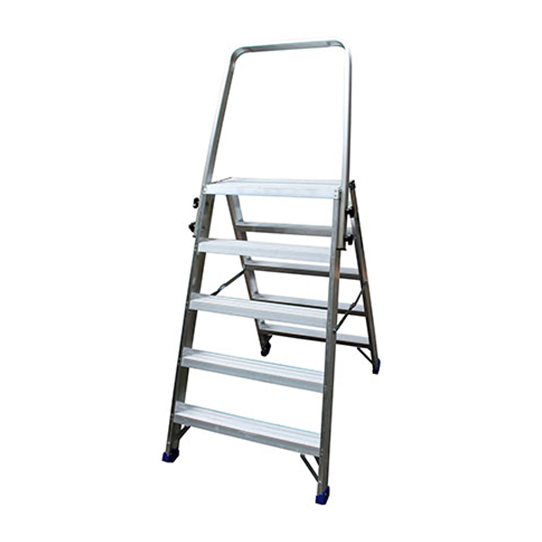 En stabil och rejäl arbetsbock med säkerhetsbåge tillverkad av aluminium. Säkerhetsbågen gör att du arbetar ännu stabilare från översta plattformen. Arbetsbocken har hydralnitade steg och en väl tilltagen plattform. Plattformens mått är 605 x 250 mm och stegets djup är 81 mm. Med de kraftiga glid och golvskydden står bocken stabilt mot underlaget. Samtliga ben är förstärkta med stag mellan vagnstycke och steg vilket ger en ökad livslängd på bocken.
