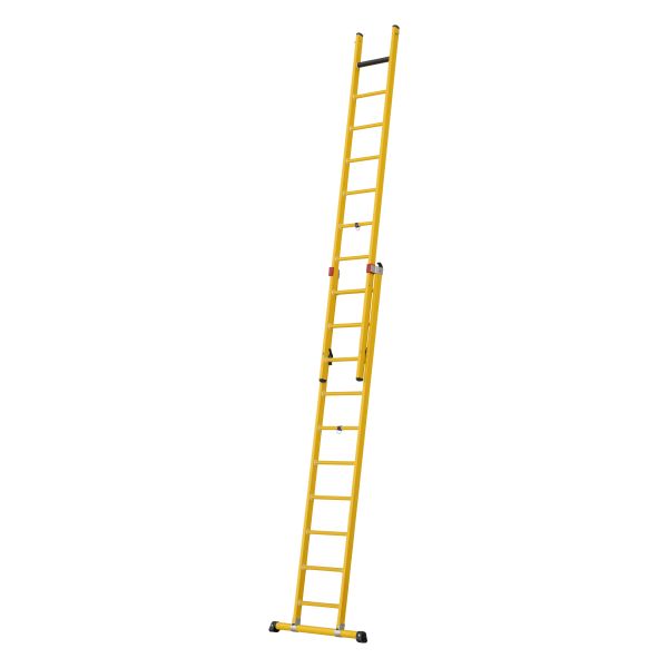 Glasfiberstegar är icke-ledande och resistenta mot syra och kemikalier. Ett utmärkt val när du arbetar med högspänningselektricitet vid exempelvis järnvägar eller ställverk. Även lämplig för aggressiva miljöer som kemisk industri, livsmedelsindustri eller vattenreningsverk där aluminiumstegar inte kan användas på grund av kemikalier eller syror. Båda sidorna, stegpinnarna och stegfoten är gjorda av glasfiberarmerad polyester med en elektrisk isolering på 13,5 kW/cm. Stegar längre än 3 meter är utrustade med en stegfot som förhindrar att stegen välter i sidled. 2-delade utskjutsstegar kan även användas som fristående stege.