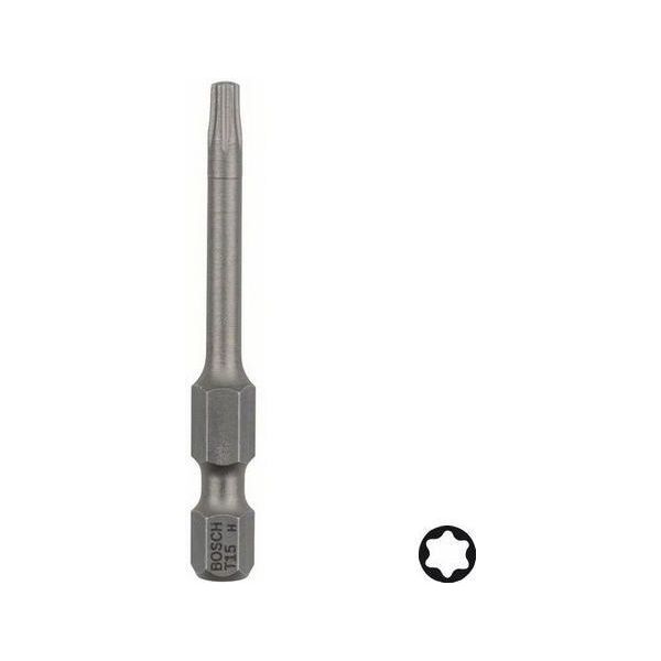 Extra hårda T15 torx-skruvbits på 49mm. Utvändigt 1/4"-sexkantskaft ISO 1173 E6.3.