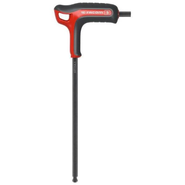Facom 84TZSA.5 är en insexnyckel med T-handtag och kula. Med ergonomiskt handtag tillverkat i tvåkomponentsmaterial för låg glidrisk och högt vridmoment. Bladet är tillverkat i hållbart kiselstål vilket ger lång livslängd.