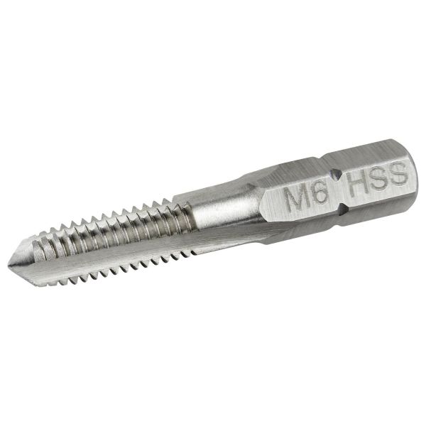Bitsgängtapp av HSS-G, designad för gängning med borr/skruvdragare med höger/vänster-rotation. Kan användas med verktyg i både nätdrivet (230V) och sladdlöst utförande. Fungerar även utmärkt vid gängning för hand med verktygshållare. Kräver minst ett 7,2V batteri vid gängning med sladdlös maskin. Maximalt rekommenderat varvtal vid maskindrift är 450 varv/min.