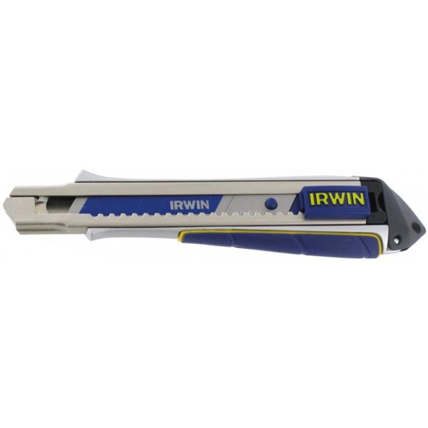 Irwin ProTouch är en slitstark och funktionsrik brytbladskniv med 18 mm brett bimetallblad och låsskruv vid knivspetsen som förhindrar att bladet lossnar vid extrem belastning. Kniven har även magasin för två blad, ett tåligt aluminiumhandtag med bladstyrning i rostfritt stål, hängslad ändkapsel samt ProTouch- handtag för säkert grepp och ökad komfort.