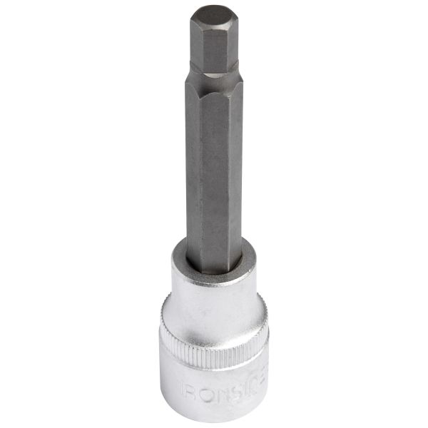 Bitshylsa på 100 mm för insex-spår, med 1/2" fyrkantsfäste. Tillverkad av mattkromad kromvanadiumstål och är ej avsedd för slående verktyg.