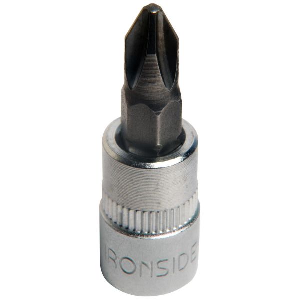 Bitshylsa för phillips-krysspår, med 1/4" fyrkantsfäste. Hylsan är mattförkromad och tillverkad i kromvanadinstål.
