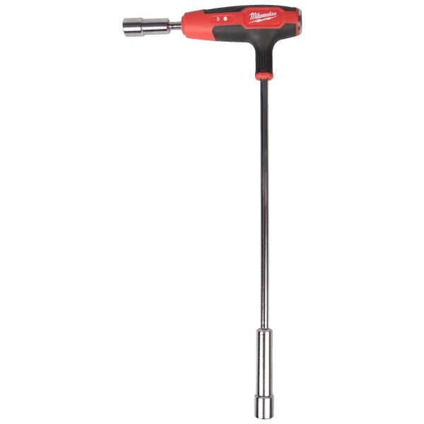 T-STRIKE™ har en slagkåpa som skyddar verktyget och ger bättre åtkomst till rundade eller rostiga bultar, och kärna helt i metall för extra hållbarhet. Den korta änden har en djup sexkantshylsa för ökad hållbarhet och på långsidan en djup 12-kantshylsa för bättre åtkomst på svåråtkomliga utrymmen. Långa hylsor för arbete på bultar med långa gängor. Storleksmärkning på verktyg och förvaringsskena för att enkelt kunna identifiera rätt nyckel.