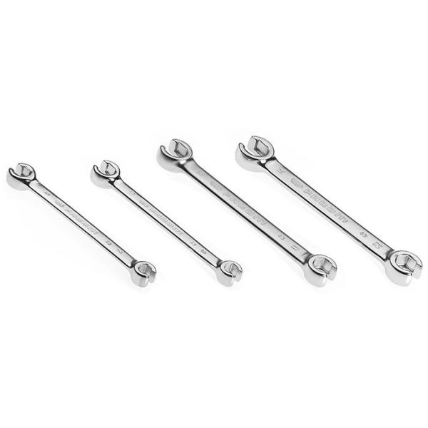 Art.nr: 1910648En ringnyckelsats i 4 delar innehållande öppna och förstärkta ringnycklar i storlekarna 7x9 / 8x10 / 11x13 och 12x14 mm.