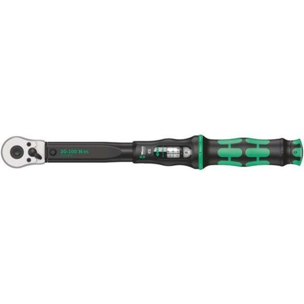 Wera Click-Torque C 2 är en momentnyckel med 1/2" fyrkantsfattning och mätområde på 20-100 Nm. För högeråtdragning med omkopplingsbar spärrfunktion med 45 tänder. Enkel inställnng och säkring av önskat momentvärde, med hör- och kännbart klick vid uppnått skalvärde. Nyckeln har ett ergonomiskt 2-komponentshandtag.