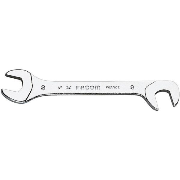 Facom 34.8 är en mikromekanisk U-nyckel med dubbla ändar med gripvidd på 8 mm och som är vinklade i 15° respektive 75°.