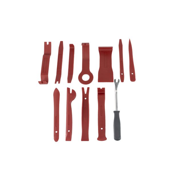 PELA 547427 är en sats i 12 delar innehållandes demonteringsverktyg för demontering av paneler, klips och trimdetaljer i och på bilar utan att orsaka skador. Verktygen är designade för olika typer av demonteringsjobb, som att lossa dörrpaneler, clips, eller andra invändiga och utvändiga detaljer på fordon. Satsen består av 11 stycken verktyg av hållbar nylon som skyddar ytor från repor samt ett metallverktyg med handtag för extra styrka och precision.