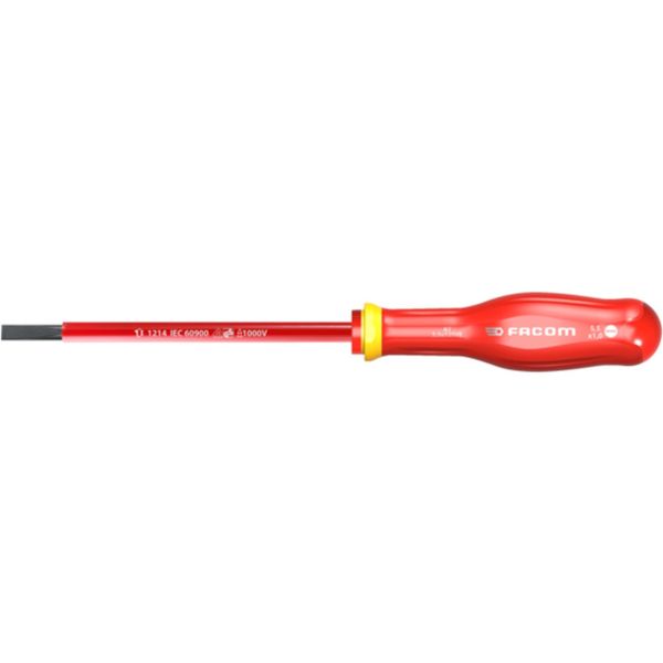 Facom AT5.5X125VE är en skruvmejsel på 5,5 x 125 mm som är VDE-godkänd för arbete vid en spänning upp till 1000V. Det kemikaliebeständiga handtaget har gjorts mjukare för högre komfort jämfört med föregångaren.