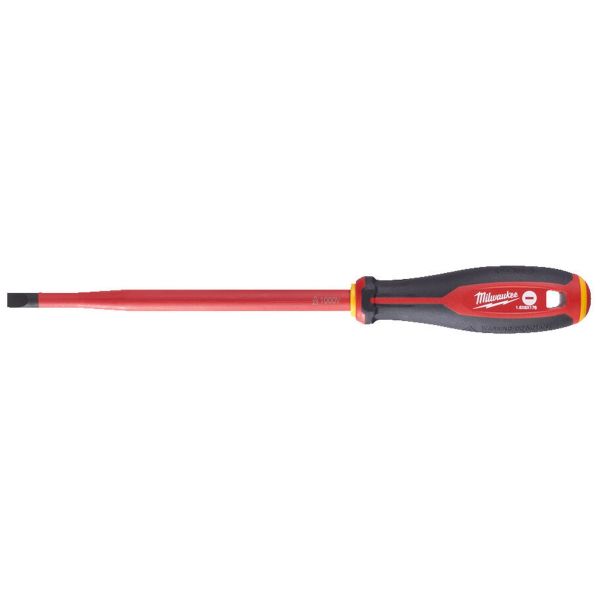 Milwaukee Tri-Lobe VDE är en skruvmejsel som är VDE-testad till 10 000 V och garanterad till 1000 V. Skruvmejseln har smal skaftdiameter för åtkomst till lågt liggande skruvapplikationer och bekvämt Tri-Lobe-handtag som är optimerat för maximal användarkomfort och applikationer med högt vridmoment. Verktyget har permanenta synliga ID-markeringar för snabb verktygsidentifiering och det finns hål till verktygssäkring. Handtaget är 3-sidigt för att förhindra rullning.