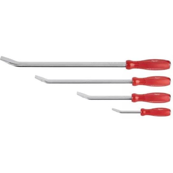 Milwaukee 48229214 är en sats med 4 st bräckjärn i olika storlekar: 200, 300, 450 och 600 mm. Bräckjärnen har en böjd klodesign som minskar skador vid spikdragning, ett ergonomiskt handtag och kromskaft som ger hög hållbarhet och korrosionsbeständighet.