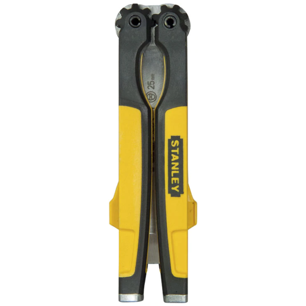 Stämjärn i fickformat med bladbredd 25 mm. Bladet är tillverkat i härdat kromstål och det kan fällas in i handtaget så att stämjärnet sedan kan förvaras i verktygspåsen och fickan.