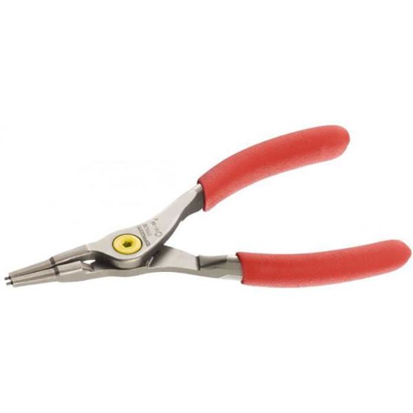 Art.nr: 1911465Låsringstång med raka 10-gradigt vinklade käftar som ger optimalt seegerringsgrepp. Med handtag beklätt i glidsäkert granit-PVC och pianotrådspets med hög deformationsbeständighet.