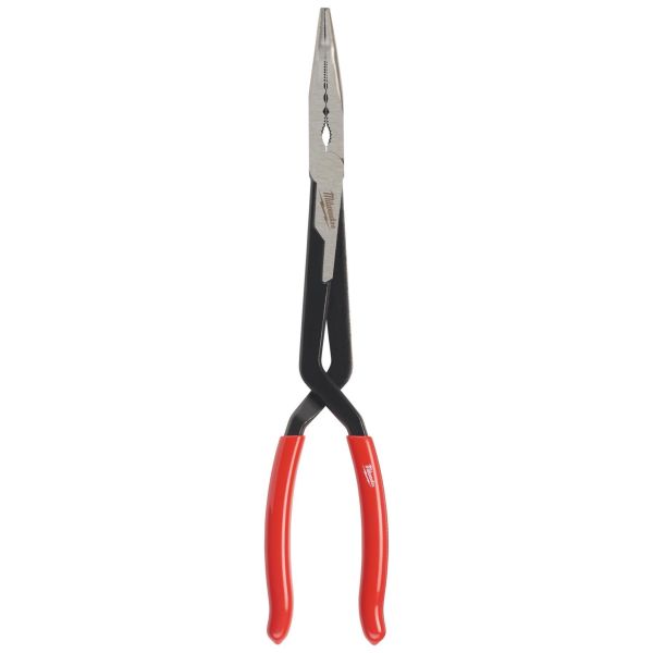 Milwaukee 4932492498 är en extra lång 45° spetstång. Tångens korshandtag ger ökad räckvidd och bättre åtkomst i trånga utrymmen. De olika greppzonerna och den texturerade spetsen ger hög kontroll och bra grepp.