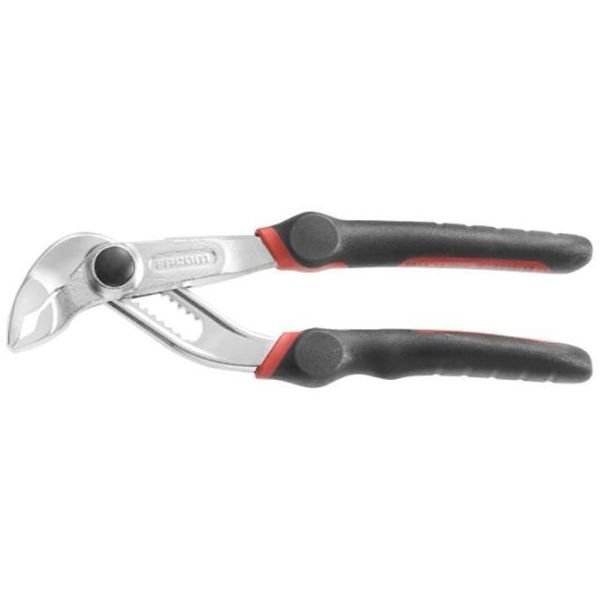 Facom 181A.18CPE är en låsande polygriptång med genomgående led (dubbelstyrning). Tack vare den stängda positionen för de ergonomiskt utformade komforthandtagen ökas tångens spännkraft. Modellen har snabb och precis tryckknappsjustering med säkerhetsspärr och 12 lägen. Även försedd med 62 HRc-behandlade käftar som klarar intensiv användning.