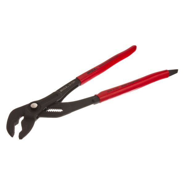 Pela 122943 är en motortång, typ Alligator. Kraftigt utförande av kromvanadinstål. Räfflade alligatorkäftar. Självlåsande - när tången klämts fast runt ett föremål låser den fast sig. Försedda med säkerhetsklack som förhindrar klämda fingrar. Polerade, med plastklädda skänklar. Delad glidled.