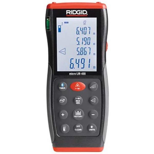 Ridgid LM-400 är en lasermätare för snabba avståndsmätningar och avancerade beräkningar. Anslut till en smartphone eller surfplatta för att överlagra mätningarna på ett foto eller skiss för att dela med andra.