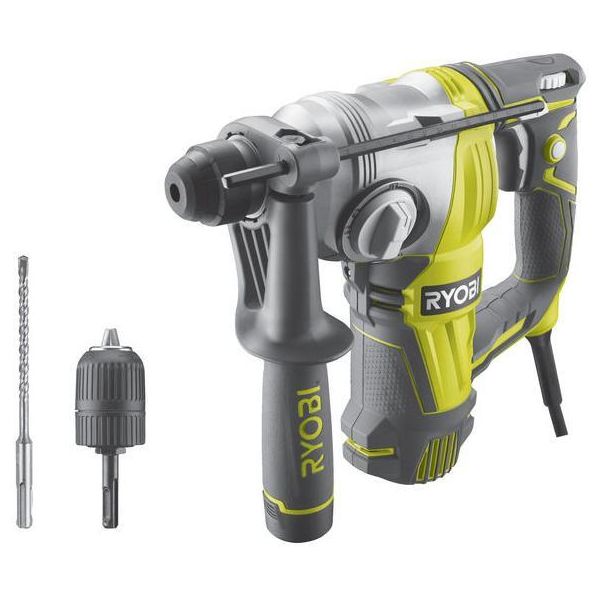 Ryobi RSDS800-KC är en SDS+ borrhammare med 4 olika funktioner: hammarborrning, borrning utan slag, mejsling och mejseljustering för maximal mångsidighet. Pneumatisk slagmekanism ger en slagenergi på 2,95 J - perfekt för att borra hål i sten och betong. 800W motor ger upp till 1450 varv/min och 5000 slag/min, vilket gör kombihammaren bäst i sin klass i 28 mm betong. Borrkapacitet Ø i trä 32 mm, metall 13 mm, betong 28 mm. Kombihammarens design är kompakt och lätt med L-formad konstruktion för att komma närmare arbetsstycket och förbättra balansen. Den har även gummerat grepp för ökad komfort. Utrustad med backfunktion för att backa borr som fastnat och LED-arbetsbelysning.