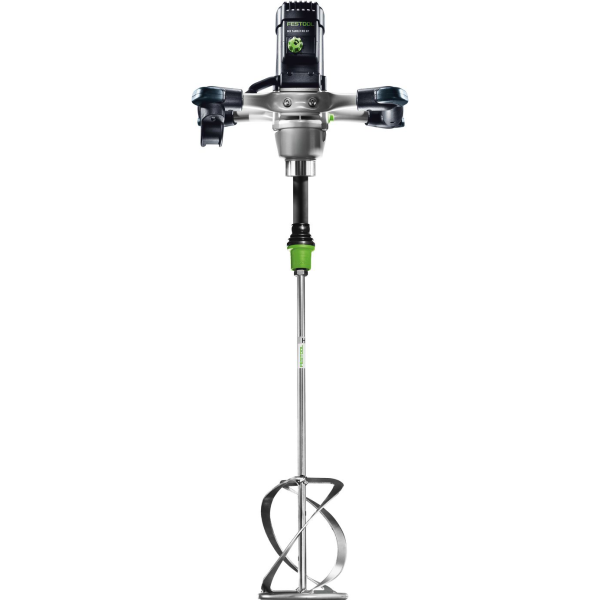 Festool MX 1600/2 RE EF HS3R är en omrörare på 1500 W med två växlar för upp till 90 l. Omröraren lämpar sig för att blanda utjämningsmassa, sättmassa, murbruk, puts och större mängder av flytande materia. Använd 1:a växeln med maxkraft under långvarigt arbete och tunga material. Höga varvtal på 2:a växeln är perfekt för flytande material.