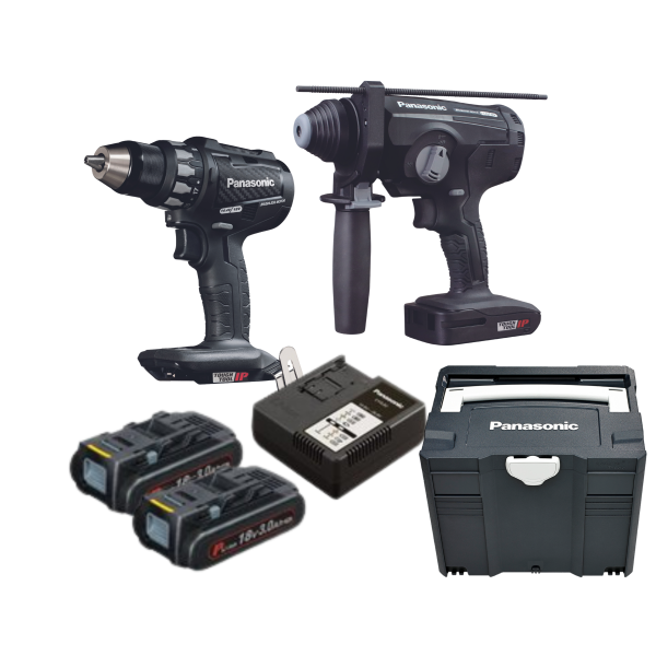 Panasonic Kombikit EYC2024HDN är ett 18 V‑baserat verktygspaket avsett för proffs som söker ett mer kompakt batterialternativ utan att kompromissa med kvalitet och prestanda. Paketet omfattar en borrskruvdragare EY74A2 och en borrhammare EY1HD tillsammans med två batterier på 3,0 Ah samt laddare. Verktygspaketet levereras alltså redo att användas direkt. Med batterier av 3,0 Ah och Panasonic 18 V‑plattformen får du ett lättare paket som fortfarande erbjuder hög flexibilitet och kompatibilitet med andra verktyg i samma system. Det passar särskilt bra för arbetsplatser där god balans mellan vikt och kapacitet krävs, exempelvis montage‑ och installationsarbete där man byter verktyg ofta.