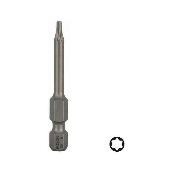 Extra hårda T8 torx-skruvbits på 49mm. Utvändigt 1/4"-sexkantskaft ISO 1173 E6.3.
