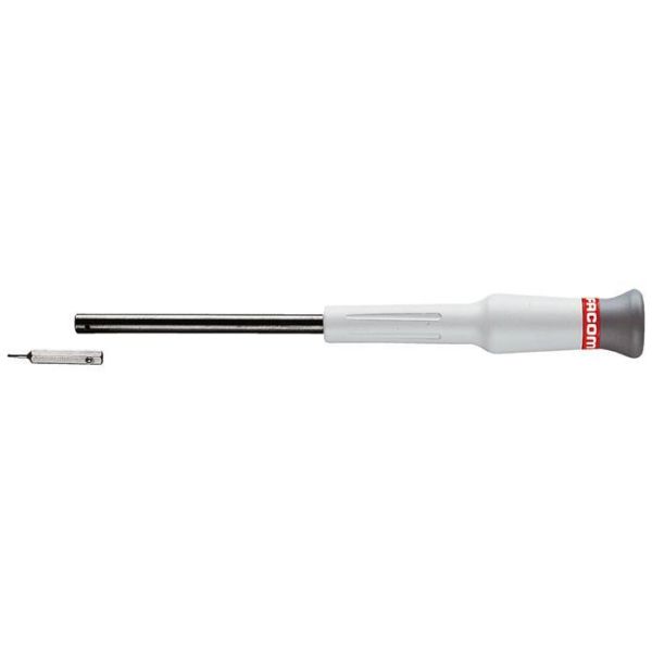 En skruvmejsel med bitshållare för sexkantsbits 0 - 4 mm.