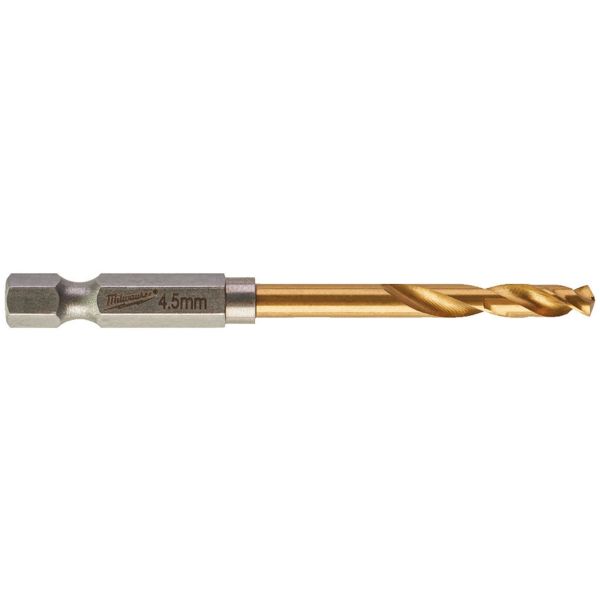 Slagtålig borr med ¼″ hexfäste, optimerade för mutterdragare. Chip Breaker-spetsen flisar det borrade spånmaterialet för snabbare bortförsel vilket också ger lägre värmeuppbyggnad i det borrade materialet. Borren har även en 135° vinklad borrspets som minimerar vandring och ger en precis start. Den koniska spiraldesignen ger snabbare materialbortförsel vilket i sin tur minimerar värmeuppbyggnad och därför ger en mer effektiv borrning. Titaniumbeläggning fördelar värmen bättre. ¼″ hexfästet ger bättre mångsidighet då det kan användas i såväl mutterdragare som borrmaskin.