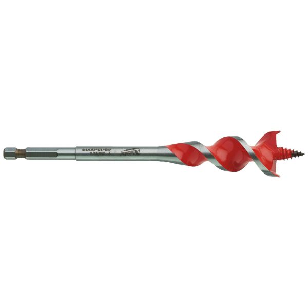 Träborr på 165 mm med 1/4" Hex-fäste. Ett steg upp från flatborr i kvalitet och prestanda - snabbare borrning, längre livstid och färre fastkörda borr. Borren har dubbla skärkanter för snabb och aggressiv borrning vilket ger upp till 10 gånger snabbare borrning jämfört med ett traditionellt centrumborr. Den koniska designen ger obesvärad borrning och färre fastkörda borr även i tuffare applikationer, vilket ger mindre brott. Gängad borrspets borrar enkelt genom både mjuka och hårda material. Polerad och pulverlackerat spiralspår för snabb spånborttagning.