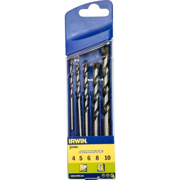 Irwin 10501917 är en borrsats med fem borrar. Borrset för slagborrning i mycket hårda material som granit.