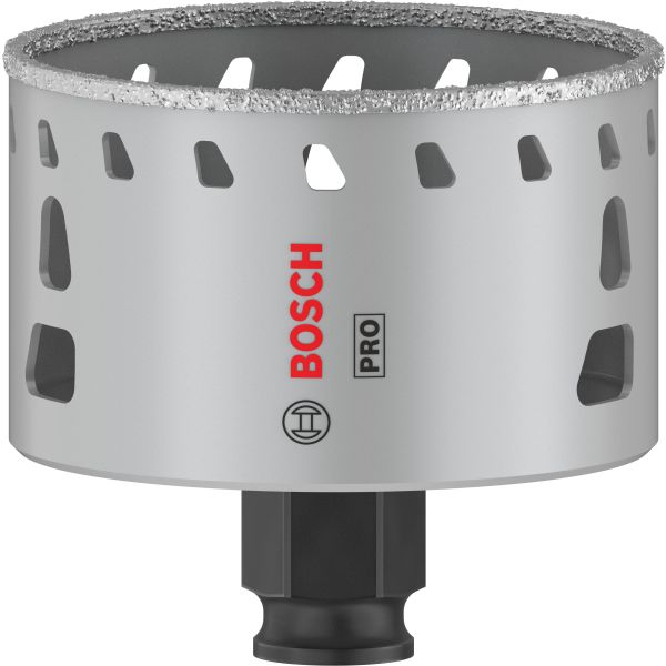 PRO Tile erbjuder mycket effektiv design och hållbarhet. De lödda bindningarna mellan korn och kropp är starka. De låga värmeslitsarna nedanför kanten leder bort oönskad värmeuppbyggnad, vilket säkerställer långvarig prestanda. För användning med Bosch Power Change Plus nyckelfri spindel.