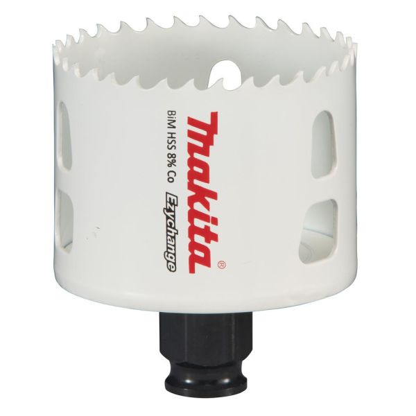 Makita Bi-metall hålsåg med Ezychange-systemet. För arbete i metall, aluminium, mjuk metall, trä, PVC plast, bimetall. Borra inte med slagfunktion.