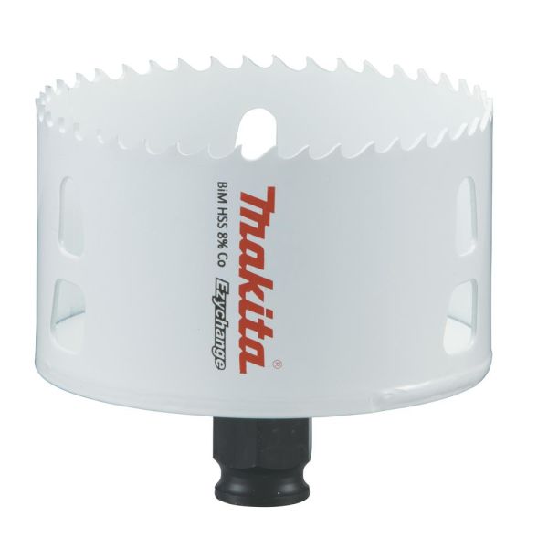Makita Bi-metall hålsåg med Ezychange-systemet. För arbete i metall, aluminium, mjuk metall, trä, PVC plast, bimetall. Borra inte med slagfunktion.
