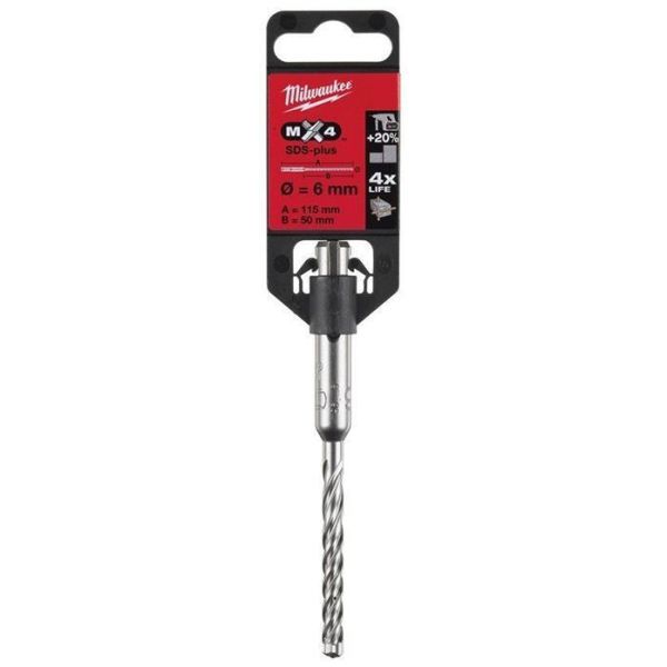4-skärs hammarborr på 6x115mm med SDS-Plus-fäste för användning till betong och murblock.