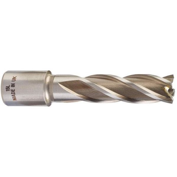 Art.nr: JZ12139-2Kärnborr med Weldon-fäste och en diameter på 15 mm för att borra i metall.
