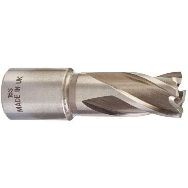 Art.nr: JZ12138-5Kärnborr med Weldon-fäste och en diameter på 16 mm för att borra i metall.