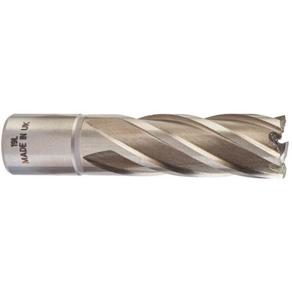 Art.nr: JZ12139-6Kärnborr med Weldon-fäste och en diameter på 19 mm för att borra i metall.